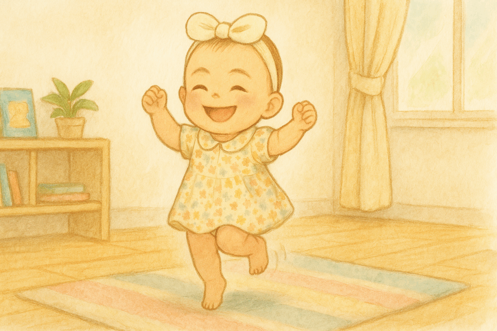 ぴょん、ぴょん。こっちをちらりと見て、得意げな眉。妻は笑いをこらえて目だけで拍手。私は親指で合図。👍